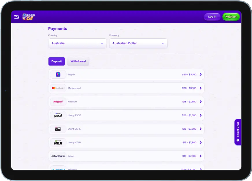 At Robocat Casino, all transactions are secure and protected with advanced encryption. The app supports a variety of payment methods, including credit/debit cards, eWallets, prepaid vouchers, and multiple cryptocurrencies, allowing fast and convenient deposits and withdrawals.